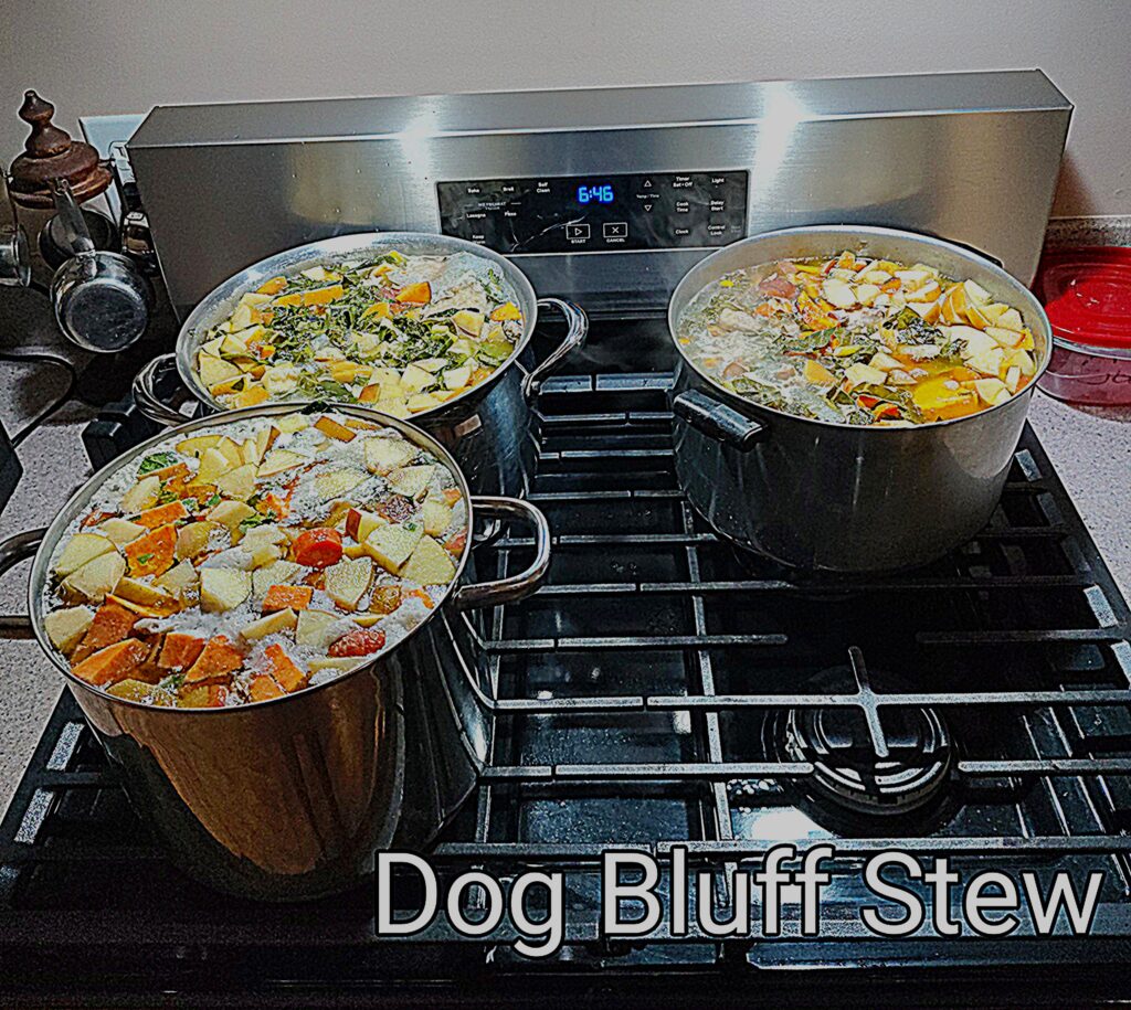 “Dog Bluff Stew” is my own recipe. In addition to free-feeding approved kibble to all my dogs, I go the extra mile for breeding studs, mammas and weaning puppies. This is easy and the results are amazing.