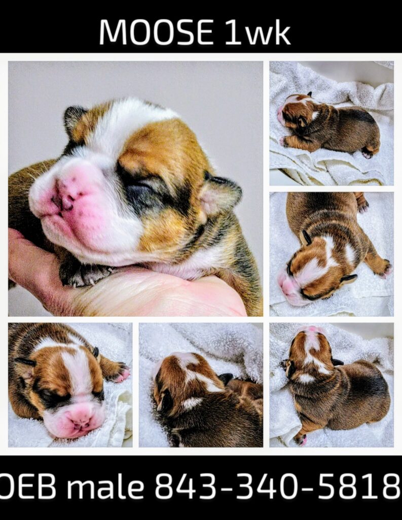Rhoda was Dog Bluff born/raised. She’s the most loving, adorable girl we’ve had the pleasure of spoiling around here. Rhoda weighs 50lbs, very petite, but has a fierce love for her puppies and humans. She’s one of the best Dog Bluff mammas on record. Rhoda requires a real hug from us every day to be happy. PREACHER comes to us from DMK program. He is the picture of OEB structure with thick bone, beautiful structure and headpiece, proud stance, and his blue-tri coat glistens in the sunshine. This 70lb boy is nothing but muscle and energy – never a dull moment with him. PUPPIES should be medium-sized.